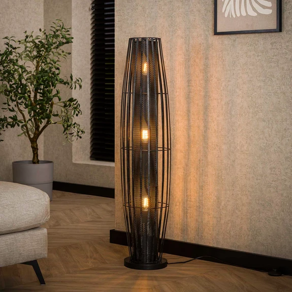 Die Stehleuchte Dublindo vereint zeitlose Eleganz mit funktionaler Vielseitigkeit und ist damit die ideale Ergänzung für verschiedene Wohnbereiche. Gefertigt aus hochwertigem Metall und in einem stilvollen Anthrazit gehalten, fügt sich die Leuchte harmonisch in Wohnzimmer, Esszimmer oder Schlafzimmer ein. Mit ihrem stilvollen modernen Lagenlook und dem Innenzylinder im Lochdesign, der mehrere E27-Lampenfassungen beherbergt, setzt sie stilvolle Akzente, die jeden Raum aufwerten.