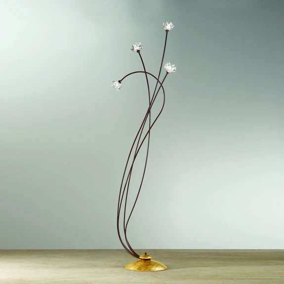 Die schmucken Kristallblüten machen die Stehleuchte Fiorella zu einem echten Statement-Piece und ziehen alle Blicke auf sich. Das florale Design der Leuchte versprüht einen einzigartigen Charme und das Licht, welches diese Leuchte spendet, ist mehr als behaglich. Hier wurde jedes Detail von den gebogenen Armen bis hin zu dem mit Blattgold versehenen Fuß perfekt durchdacht.