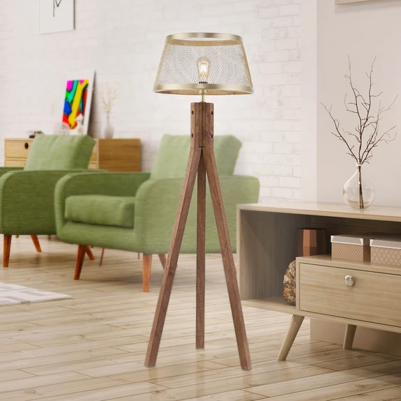 Stehleuchte Frederik aus Holz, Dreibein