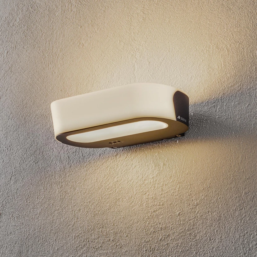 LN 710 N ist eine moderne Außenwandleuchte in harmonisch geschwungenem Design. Sie verzichtet auf einen Bewegungsmelder und orientiert sich stattdessen mittels Dämmerungsschalter an der Umgebungshelligkeit.