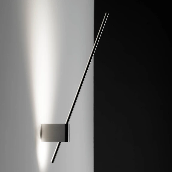 Minimalismus und moderne Eleganz versprüht die Wandlampe AX-LED mit ihrem charakteristischen Design in der Form eines hohen Stabs. Dieser ist an der Rückseite mit LEDs bestückt, die ein warmweißes Licht mit guter Farbwiedergabe (CRI > 90) emittieren. Damit sorgt die LED-Wandleuchte für einen diffusen Wallwashing-Effekt und eine angenehme indirekte Grundbeleuchtung. Bei Bedarf lässt sich der Stab um bis zu 20° nach vorn neigen, zudem ist AX-LED extern über den Phasenanschnitt oder Phasenabschnitt dimmbar.