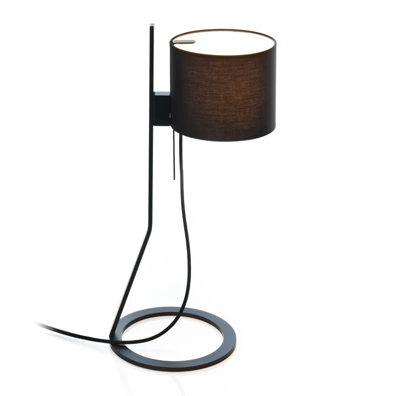 Die Tischleuchte Loft überzeugt als angenehmer und variabler Lichtspender, insbesondere in modern eingerichteten Wohn-, Hotel- und Aufenthaltsräumen. Ihr Stoffschirm ist in zeitloser Zylinderform gestaltet und mit einer LED-Lichtquelle bestückt, die warmweißes Licht mit guter Farbwiedergabe (CRI > 90) emittiert. Eine magnetische Befestigung des Schirms ermöglicht die Anpassung von dessen Höhe und Neigung. Das Gestell mit ringförmigem Fuß und schlankem, hohem Stab ist aus Stahl gearbeitet. Die von Michael Raasch entworfene LED-Tischlampe wird über den Dimmschalter auf dem Steckerkabel bedient.