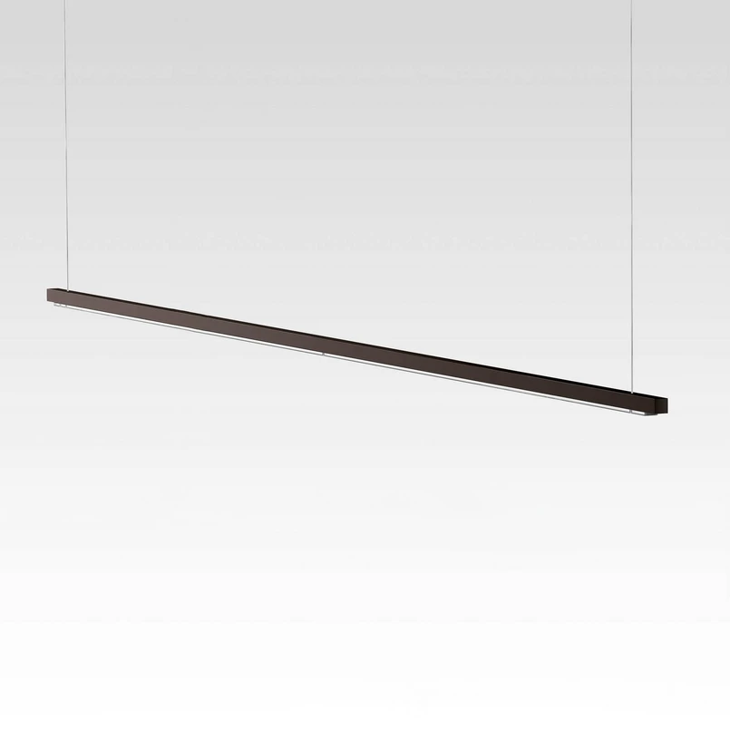 Als schlichter, einfarbiger Aluminiumstab, befestigt an zwei hauchdünnen Kabeln, präsentiert sich die LED-Pendelleuchte Oneline. Der vom Architekten und Designer Hadi Teherani entworfene Lichtspender lässt sich perfekt über Tischen in modernen Umgebungen einsetzen. Hier überzeugt Oneline mit warmweißem Licht und guter Farbwiedergabe (CRI > 90), wobei die an der Unterseite integrierten LEDs optisch eine durchgängige Lichtlinie bilden. Phasenanschnitt-/Phasenabschnittdimmer können verwendet werden, um den Lichtoutput der LED-Hängeleuchte extern zu regeln.