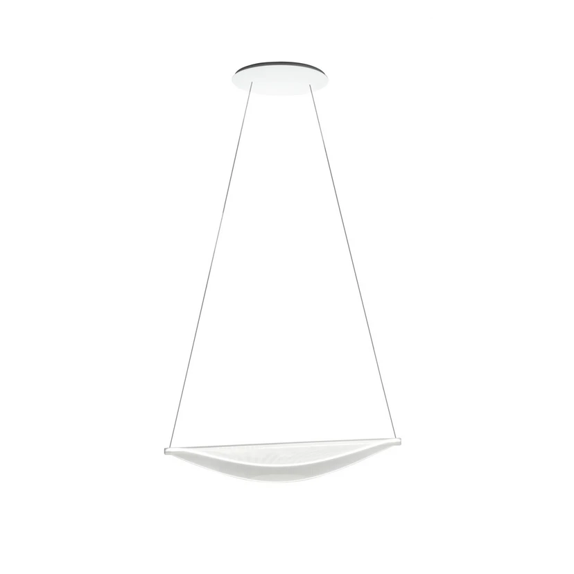 Bei der LED-Hängeleuchte Diphy ist ein Diffusor aus transparentem, laser-mikrograviertem PMMA (Kunststoff) mit OptiLight™-Technologie verbaut, der thermisch gebogen wird. Der Baldachin besteht aus weiß lackiertem Aluminium. Ein topLED-Modul dient als Lichtquelle und überzeugt mit warmweißem Licht, das über eine sehr gute Farbwiedergabe verfügt (CRI>90). Zusätzlich lässt sich die Intensität per Phasenan-/abschnitt extern dimmen.