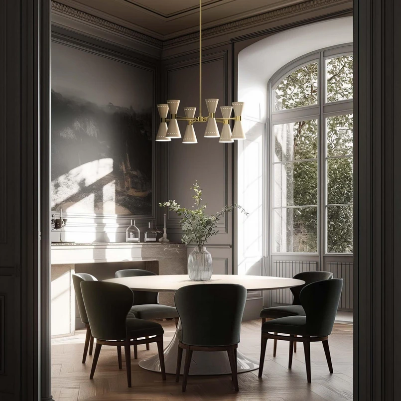 Die 16-flammige Pendellampe Megafono vereint zeitloses Design, das ursprünglich aus den 1950er-Jahren stammt, mit funktionaler Beleuchtung und wird so zum Highlight in jedem Wohn- und Esszimmer. Gefertigt aus hochwertigem Metall, besticht diese Pendellampe durch ihre klare Formensprache und die Möglichkeit, die acht Schirme zu drehen und zu schwenken. Die standardisierte E14-Fassung erlaubt den einfachen Austausch der LED-Lichtquelle, wodurch Flexibilität und Langlebigkeit gewährleistet sind. LED-Leuchtmittel sind enthalten. Mit ihrer warmweißen Lichtfarbe schafft die Hängelampe Megafono eine behagliche Atmosphäre, die zum Entspannen und Verweilen einlädt. Die in Italien gefertigte Lampe überzeugt nicht nur durch ihre ästhetische Erscheinung, sondern auch durch ihre hohe Verarbeitungsqualität. Die von Stilnovo entworfene Pendellampe fügt sich harmonisch in moderne Einrichtungsstile ein und setzt stilvolle Akzente.