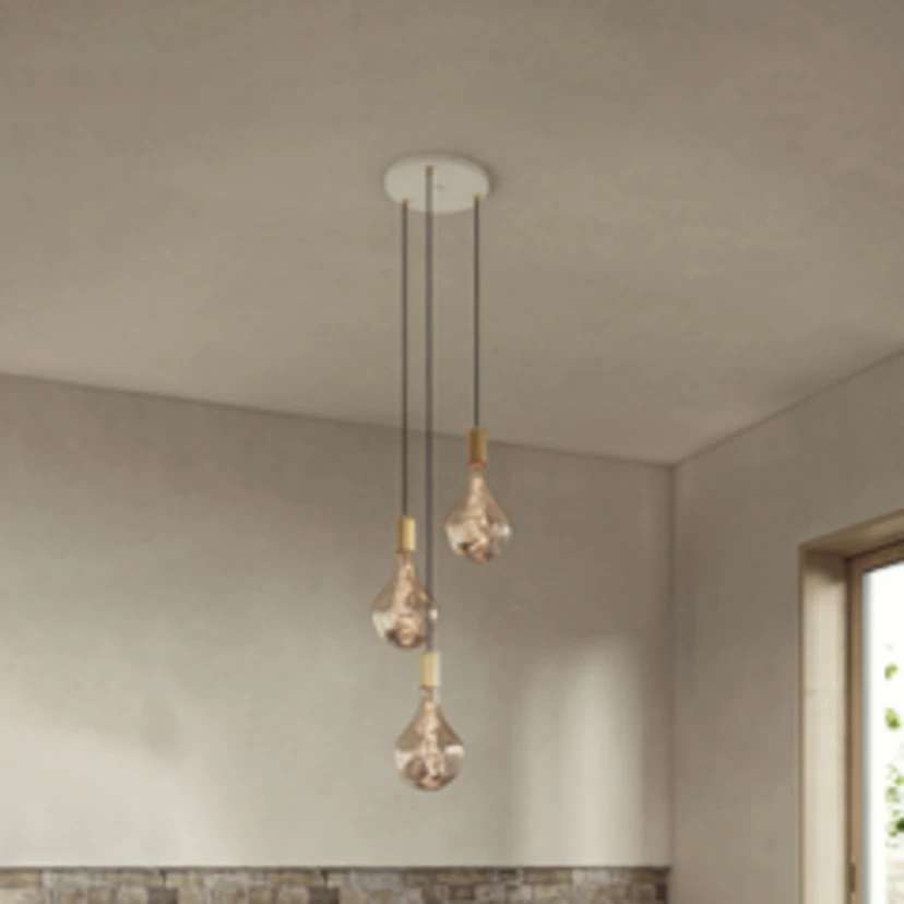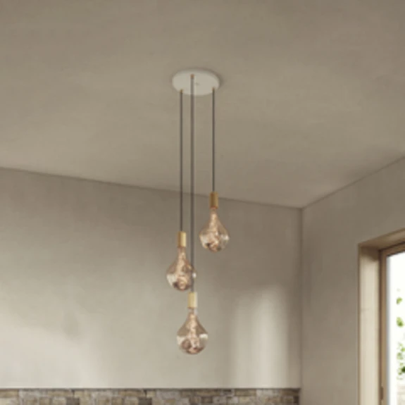 Tala Hängelampe Triple Pendant rund, E27 klar, Metall, Holz