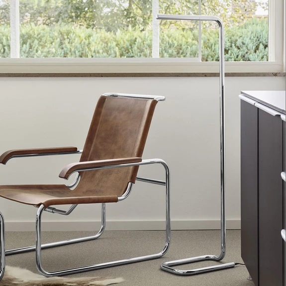 Klassisches Bauhausdesign und moderne Technik vereinen sich in der LED-Stehleuchte LUM des Architekten und Designers Ulf Möller, der bereits für das Unternehmen THONET Möbel im bekannten Stahlrohrdesign entworfen hat. Die Zusammenarbeit von THONET und der Leuchtenmanufaktur TECNOLUMEN firmiert unter dem Signet "THONET by TECNOLUMEN" und bringt eine Leuchtenserie namens LUM hervor, die an das bekannte Stahlrohrdesign und die funktionale Idee des Bauhaus anschließt.