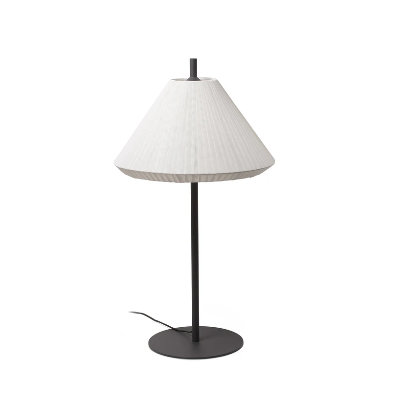 Die Terrassenleuchte Saigon wurde sehr zeitlos und schlicht gestaltet. Das Design stammt vom Studio Nahtrang aus Spanien. Das Gestell besteht aus Aluminium und der oben aufsitzende Schirm wurde aus Textilene-Gewebe hergestellt, einem äußerst robustem und langlebigem Material. In die im Schirm sitzende Fassung können alle Arten von Leuchtmitteln in der passenden Größe eingesetzt werden, auch energieefffiziente LED-Lampen.