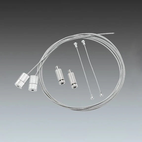 Zur Nutzung der LED-Lichtleiste PopPack kann diese Abhängung aus Stahlseilen mit einer Länge von 200 cm genutzt werden.