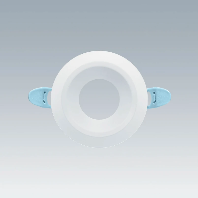 Mit dieser runden Verkleidung wird das LED-Lichtmodul Lily mit Schutzart IP65 ausgestattet, sodass auch eine Nutzung im Badezimmer möglich ist.