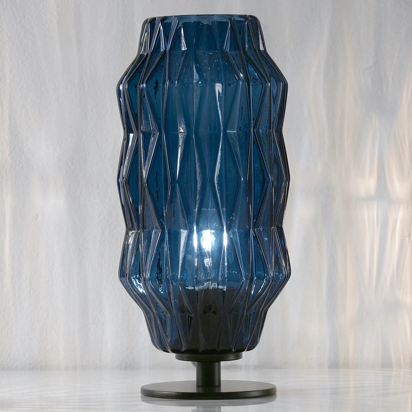 Tischleuchte Origami mit reizvoll gestaltetem Glasschirm
