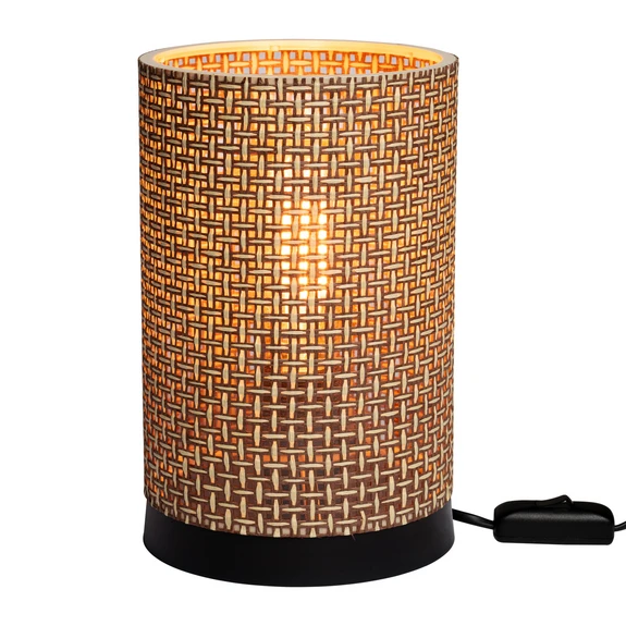 Die Tischleuchte Tina besticht durch ihr raffiniertes Design und die Kombination aus Textil und Kunststoff. Die braun gemusterte Oberfläche verleiht jedem Raum, sei es Schlafzimmer oder Wohnzimmer, eine warme und einladende Atmosphäre. Die zylindrische Form sorgt für eine gleichmäßige Lichtverteilung, die sowohl beruhigend als auch inspirierend wirken kann.