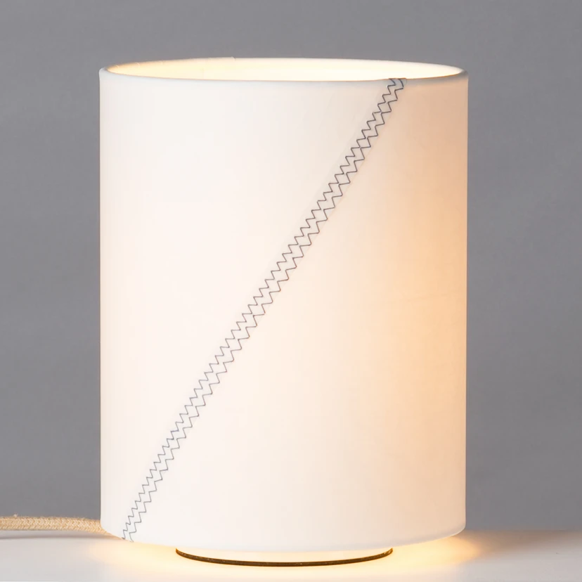 Ein zylindrischer Schirm aus gebrauchtem Segeltuch mit einer farbigen Zick-Zack-Naht und ein runder Sockel aus Metall - das ist die Tischleuchte Traditionsschiff, die nicht nur als Nachttischleuchte, sondern auch als Zusatzlichtspender im Wohnzimmer mit maritimer Note begeistert. Die Leuchte wird in Deutschland mit ökologischer und sozialer Verantwortung in Kooperation mit sozialen Projekten gefertigt. Upcycling ist hier Trumpf, denn es werden ausrangierte Segel zur Fertigung der Schirme verwendet, sodass jede Leuchte als Unikat seine eigene Geschichte erzählt. Die Tischleuchte ist mit einem Textilkabel samt Schalter und Stecker ausgestattet.