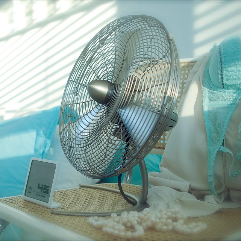 Die Oszillations-Funktion bewirkt, dass sich der Ventilator selbsttätig dreht und so mehreren Personen gleichzeitig in den Genuss von einer kühlen Brise kommen können.