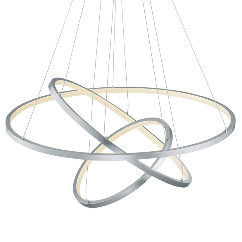 Drei Kreise, versetzt zueinander angebracht, bilden das imposante Design der modernen LED-Hängeleuchte Aaron. Jeder Kreis besitzt integrierte LEDs, die mit der innovativen WiZ-Technologie ausgestattet sind und sich smart steuern lassen. Ob mit der mitgelieferten Fernbedienung, der kostenlosen App oder einem passenden Sprachassistenten, die Steuerung ist äußerst flexibel wählbar und ermöglicht vielfältige Anwendungen.