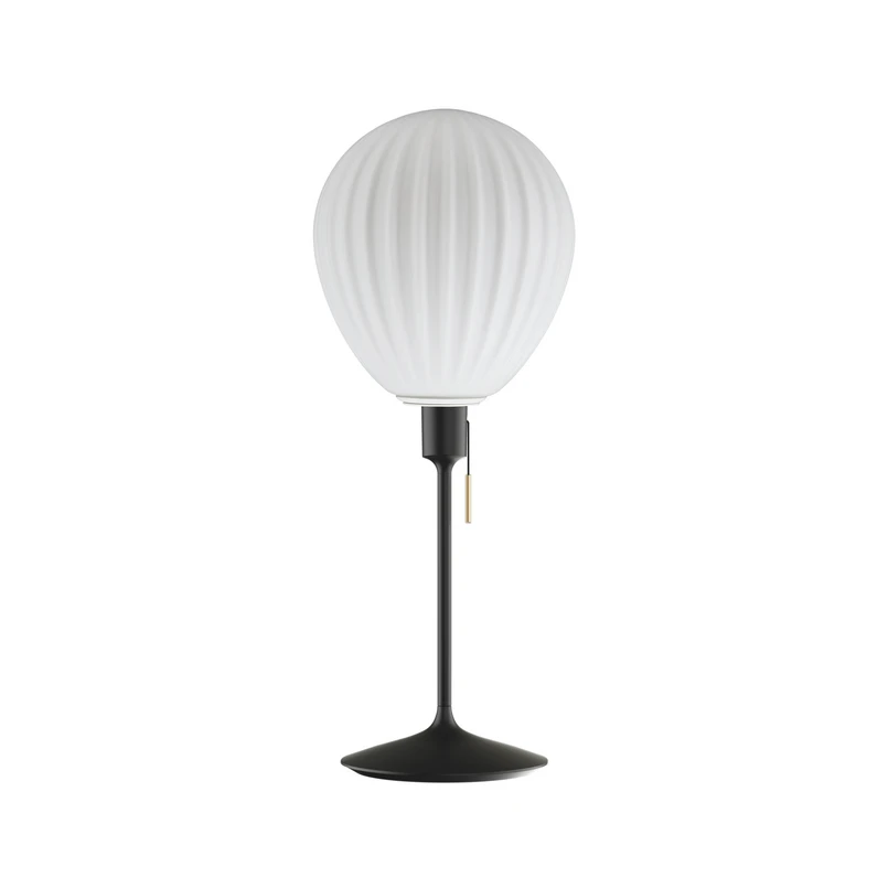 Der Schirm der Tischleuchte Around The World besteht aus mundgeblasenem Glas und hat die Form eines Heißluftballons - inspiriert vom Universum des berühmten Autors Jules Verne. Seine milchig-weiße Farbe, seine Form und seine Oberflächenstruktur machen ihn in Kombination mit dem schlicht-eleganten Gestell aus Stahl zur perfekten und harmonischen Ergänzung jeder Inneneinrichtung. Durch den Schirm strahlt das Licht blendfrei und gleichmäßig ab, wobei der Schirm selbst im eingeschalteten Zustand seine gesamte Schönheit entfaltet, denn dann kommt die Struktur des Glases noch effektvoller zur Geltung. Die Bedienung der Leuchte erfolgt komfortabel über den Zugschalter oben am Gestell.