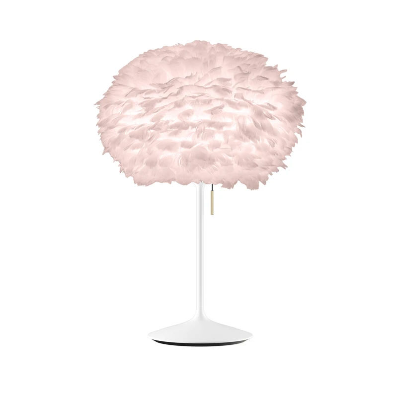 Tischleuchte Eos medium mit weißem Fuß und farbigem Schirm aus Federn