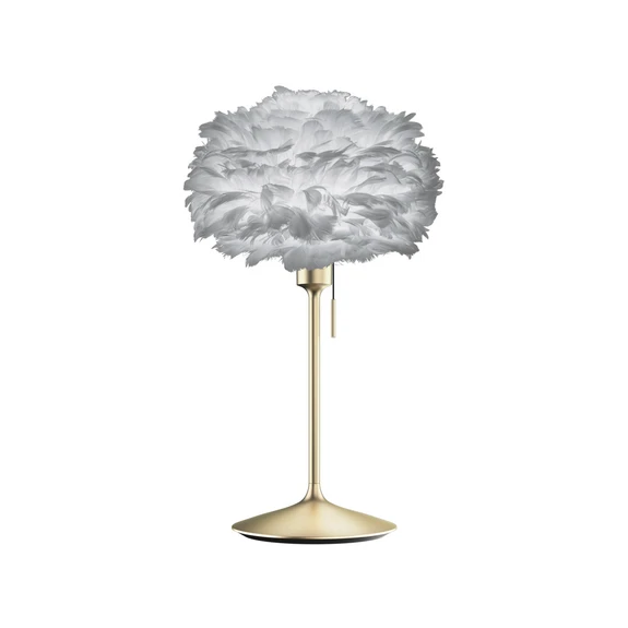 Designer-Tischlampe Eos mini mit einem Federschirm und messingfarbenem Gestell