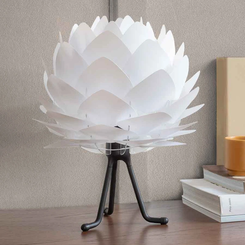 Die formgebenden organischen Lamellen, die sich optisch ähnlich einem Biberschwanz nach oben fächern, ziehen gewiss die ganze Aufmerksamkeit auf sich. Der Kunststoff der Tischleuchte Silvia Mini ist unzerbrechlich und wird leicht überlappend angeordnet. Je nach eigenem Wunsch kann der Schirm in zwei Varianten montiert werden. Entweder nach oben oder nach unten geöffnet.