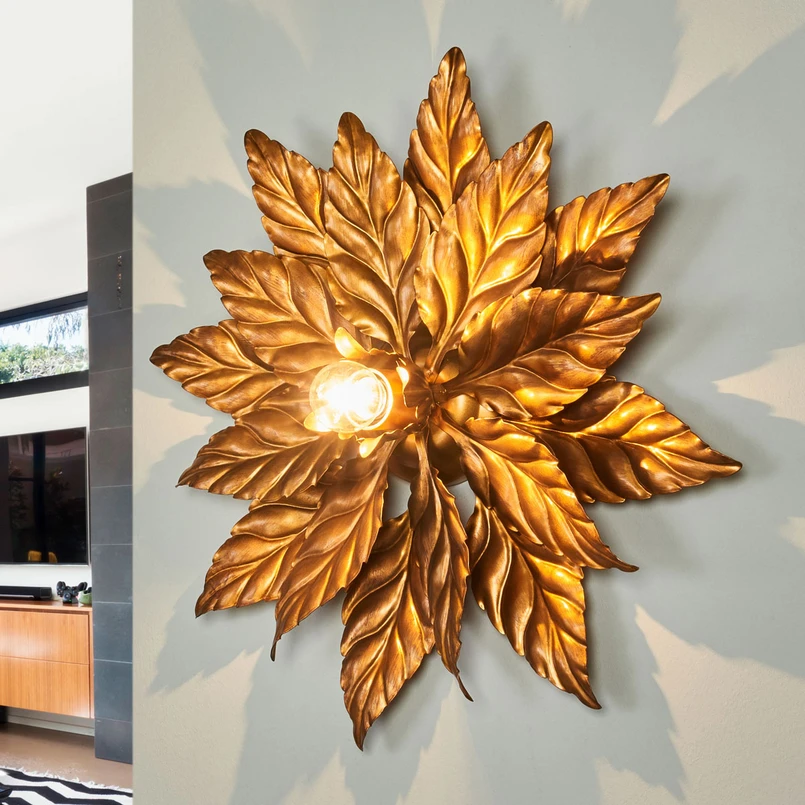 Wandleuchte Antik mit goldenen Blättern 40 cm