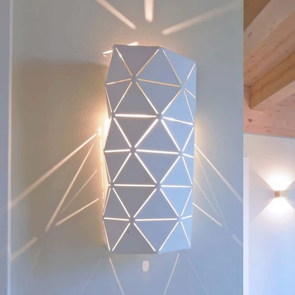 Die moderne Wandleuchte Asterope bietet einen besonderen Blickfang, ob im ein- oder ausgeschalteten Zustand. Der Schirm ist aus Metall gefertigt und mit kleinen Durchbrüchen versehen. Diese lassen das Licht auf sanfte Weise durchscheinen und erzeugen so ein faszinierendes Licht- und Schattenspiel. Perfekt für moderne Wohnräume, ob Wohn- oder Schlafzimmer.