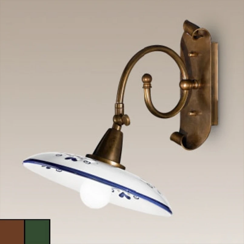 Ideal für den Landhausstil oder den klassisch eingerichteten Wohnraum ist die Wandleuchte Bassano geeignet. Die Kombination der Materialien Messing und Keramik sorgt für einen ansprechenden, rustikalen Look, der unterstrichen wird von der geschwungenen Wandhalterung. Der flache Schirm in Weiß mit farbigen Dekorationen gibt Bassano einen leicht verspielten Look. Die Farbe der Dekorationen kann ganz dem persönlichen Geschmack angepasst werden und ist erhältlich in Blau, Grün und Braun. Bassano spendet so nicht nur angenehmes Licht, sondern ist gleichzeitig eine hübsche, dekorative Ergänzung des Wohnraums.