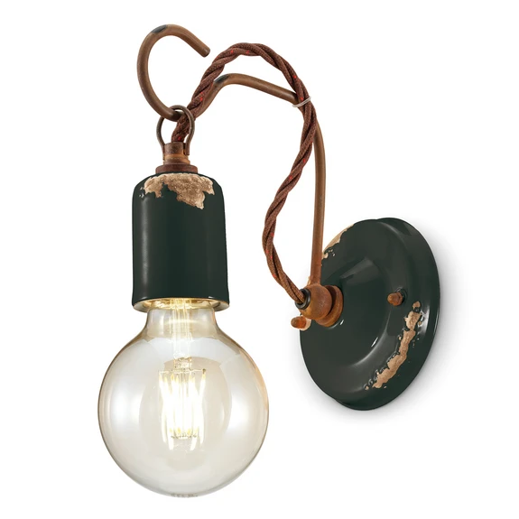 Ganz im Vintage-Stil gestaltet ist die Wandleuchte C665 schlicht in ihrer Formgebung und gekennzeichnet durch die wie abgenutzt aussehenden Flächen in der Farbe. Sie ist durch die leuchtenden Farben und die glänzende Oberfläche sehr modern, fügt sich durch die Fertigung aus Keramik und Metall aber problemlos in urbane Einrichtungen oder ein Vintage-Ambiente ein.