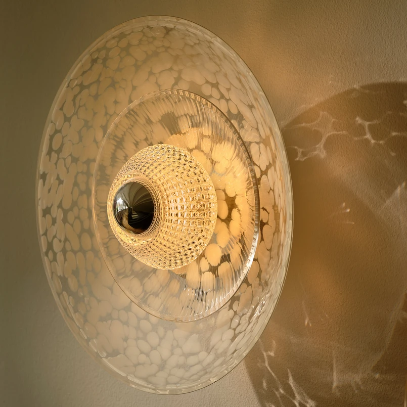 Die Wandleuchte Disco Rama – das ist Licht in Bewegung und Form in Harmonie. Die Wandleuchte verwandelt sowohl Wand als auch Decke in lebendige Lichtoberflächen und ist eine skulpturale Leuchte in runder Form, in deren Zentrum das Leuchtmittel sitzt, das durch die unterschiedlichen Elemente aus verschiedenen Glasarten eine einzigartige Beleuchtung abstrahlt, fast wie eine leuchtende Discokugel, die sanft Umgebungslicht ausstrahlt, das die übereinander liegenden Scheiben rundum effektvoll illuminiert. Die Wandleuchte Disco Rama ist mehr als nur eine Lichtquelle - sie ist ein atmosphärisches Erlebnis. Das zentrale Leuchten wird sanft durch die umgebenden Elemente diffusiert und wirft subtile Schatten und Reflexionen, die Tiefe, Rhythmus und Bewegung in den Raum bringen. Wenn Licht auf Form trifft, interagieren die Scheiben mit ihrer Umgebung und erzeugen eine stille Choreografie aus Schatten, Weichheit und skulpturaler Präsenz. Ein- wie ausgeschaltet ist die Leuchte Disco Rama eine effektvolle Dekoration an jeder Wand.