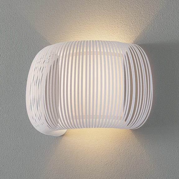 Die Wandleuchte Mirta ist ein absoluter Blickfang in jedem Raum. Ihre spezielle Optik lässt sie hochwertig und natürlich erscheinen. Der weiße Acryl-Diffusor im Inneren ist umgeben von einer Vielzahl an feinen Kunststoff-Streben, die mit Stoff ummantelt sind und sich halbrund um den Diffusor wölben. Sie sind in gleichmäßigen Abständen fächerartig nebeneinander gesetzt und lassen das Licht durch die Zwischenräume in den Raum hinein strömen. Durch den opalen Diffusor ist das Licht blendfrei und gleichmäßig. So wird eine aufregende Lichtstimmung erzeugt mit ansprechenden Licht- und Schatteneffekten, die sich im Raum abzeichnen. Mirta sorgt für eine gute Allgemeinbeleuchtung und kann in einer Vielzahl an Räumen und Einrichtungsstilen zum Einsatz kommen.