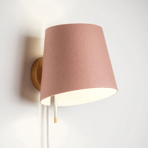 Die Wandleuchte MUUN verleiht jedem Schlafzimmer eine gemütliche Atmosphäre. Die Wandhalterung besteht aus Eichenholz, der Schirm wurde aus Wollfiz gefertigt. Die Kombination der beiden Materialien sorgt für einen angenehmen natürlichen Look im Raum. Ganz besonders praktisch ist der zu beiden Seiten um 45° schwenkbare Lampenschirm. Gemeinsam mit dem integrierten Handdimmer in der Steckerzuleitung sorgt er jederzeit für ideale Lichtverhältnisse. Durch die Verwendung hochwertiger Materialien und die dezente Farbgebung bereichert MUUN jede Wohumgebung und setzt außerdem einen behaglichen Akzent.