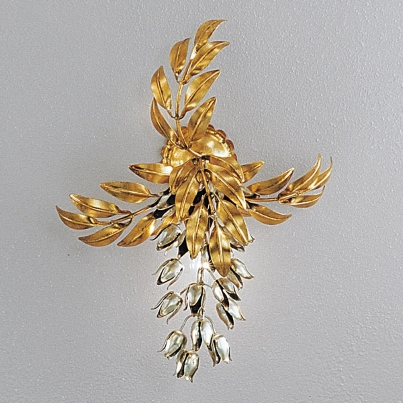 Exklusive Wandleuchte PIOGGIA D-Oro mit edlem Design aus Blüten und Blättern