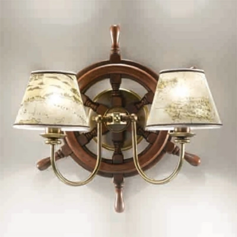 Es gibt Leuchten, die so besonders sind, dass man den Blick überhaupt nicht von ihnen abwenden kann. Eine diese Leuchten ist Porto, die im authentischen Maritim-Look daherkommt. Das Herzstück dieser Wandleuchte ist zweifelsfrei das Steuerrad, das sich zwischen den beiden Leuchtkörpern befindet. Durch die Kombination aus Holz, Messing und Stoff entsteht ein ganz besonderes Licht-Ensemble, das sich perfekt für den Einsatz in Restaurants und privaten Räumlichkeiten eignet. Durch die besondere Struktur der Stoff-Lampenschirme wirkt die Leuchte so, als hätte sie tatsächlich einmal in einem der legendären Piratenschiffe gehangen.