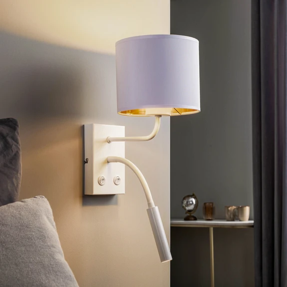 Wandleuchte Soho, zylindrisch, Leselicht weiß/gold