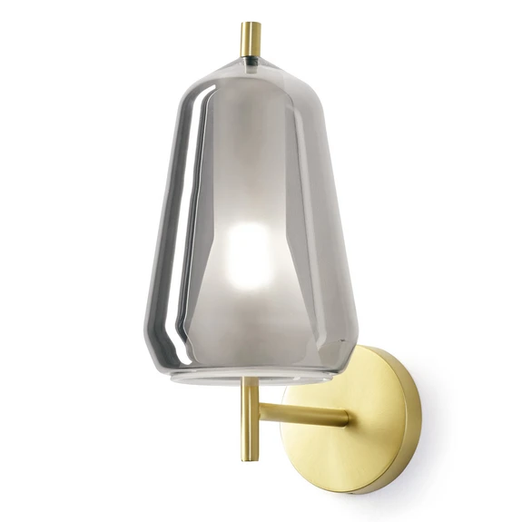 Mit ihrer Eleganz und angenehmem Licht ist die Wandleuchte X-Ray die perfekte Wahl für private Wohn- und öffentliche Aufenthaltsbereiche. Charakteristisch ist der doppelte Glasschirm: Eine matte Innenschicht sorgt dafür, dass das Licht der einzusetzenden Lampe gleichmäßig gebrochen wird. Die äußere Sphäre ist durchsichtig und aus Borosilikatglas zu einem hohen, schlanken Kegel geformt. Hinzu kommt eine Halterung aus Metall, die mit ihrem matt-goldenen Finish für eine Elegante Note sorgt.