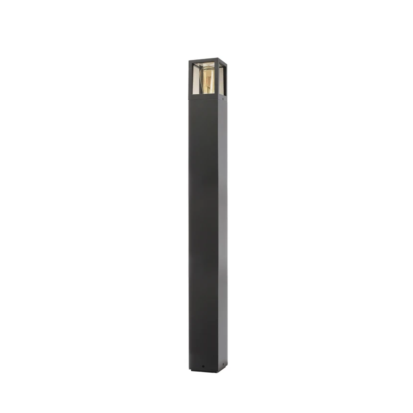Facado II ist eine moderne Wegeleuchte, die den Außenbereich zu allen Seiten erhellt. Das Aluminiumgehäuse ist in hoher Quaderform gestaltet und mit einem Finish in metallischem Dunkelgrau versehen. Das Licht des einzusetzenden E27-Leuchtmittels wird durch eine rauchgrau getönte Polycarbonat-Abdeckung rundum abgestrahlt.