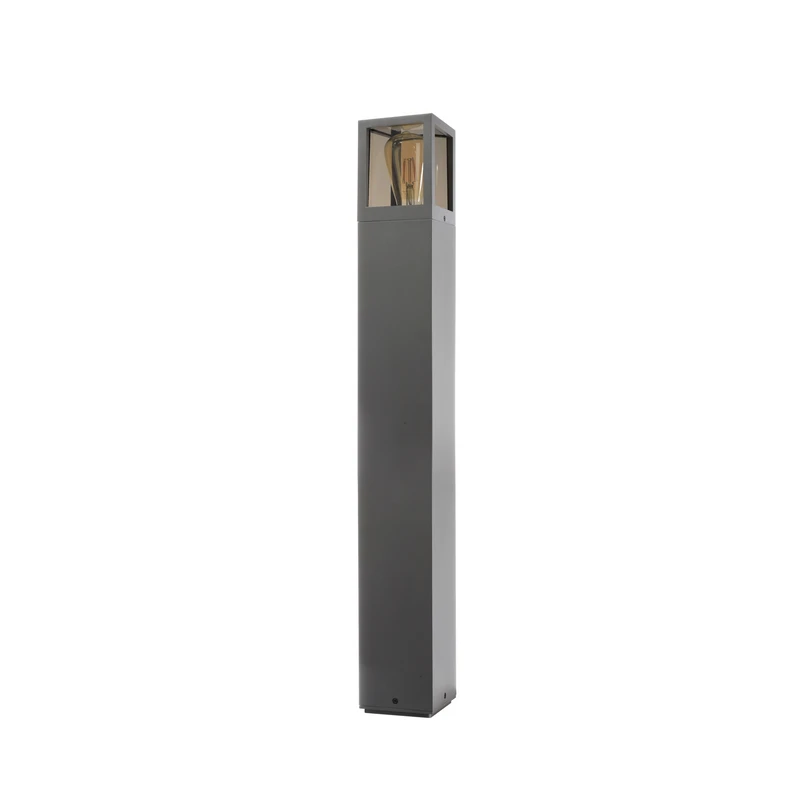 Quaderförmig gestaltete Wegeleuchte Facado II in Dunkelgrau-Metallic mit rauchgrauer Abdeckung