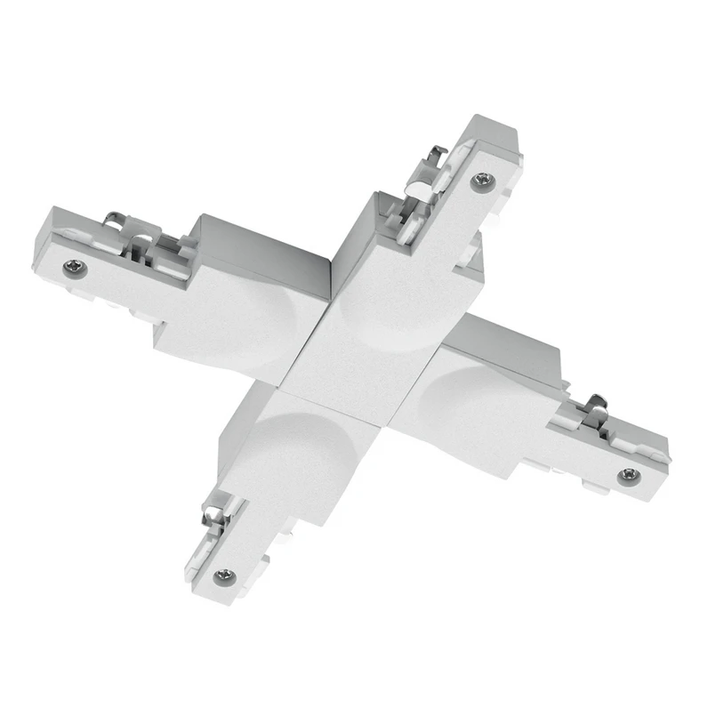 Dieser Verbinder ist für das 2-Phasen-Schienensystem DUOline vorgesehen. Vier Schienen können mit dem X-Verbinder über Kreuz gekoppelt werden. Erhältlich farblich passend zu den einzelnen Schienen.