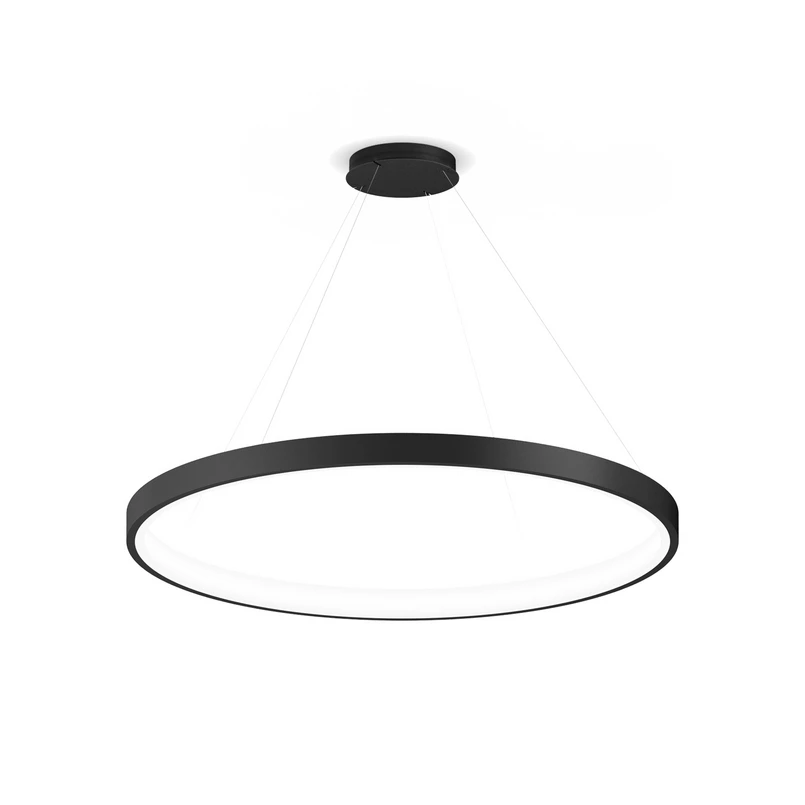 Der Leuchtkörper der LED-Hängeleuchte INO circle ist ringförmig und aus gerolltem und nahtlos verschweißtem Aluminiumstrangpressprofil mit pulverbeschichteter Oberfläche gefertigt. Im Baldachin ist das elektronische Betriebsgerät integriert und eine Durchgangsverdrahtung ist hier ohne Weiteres möglich.