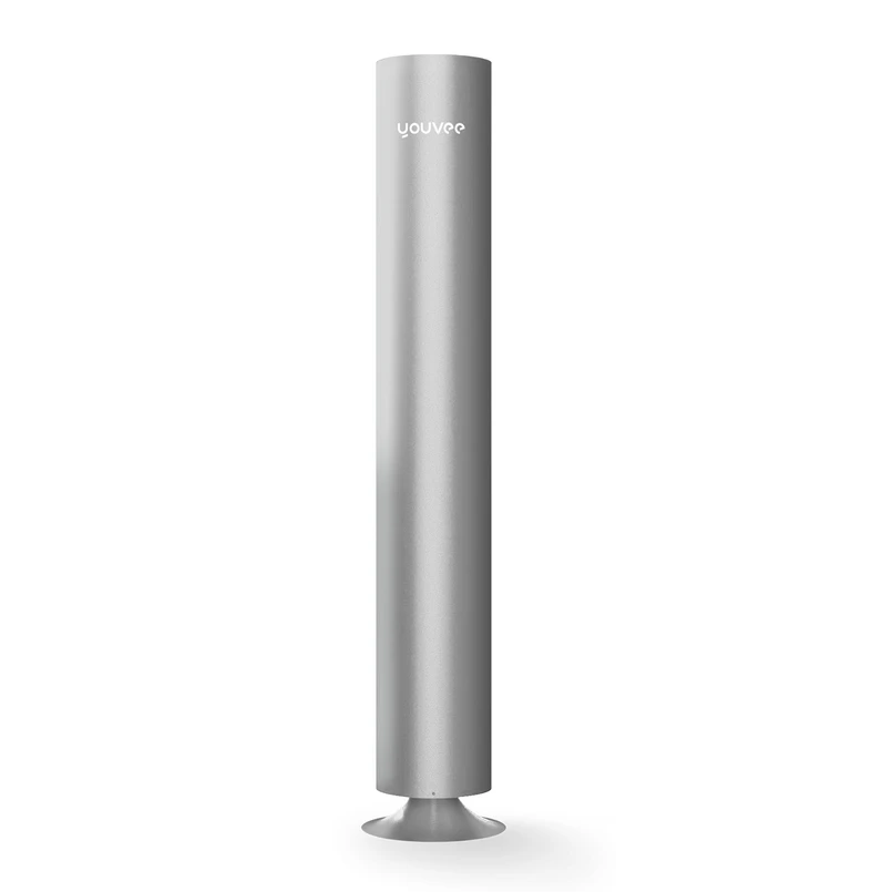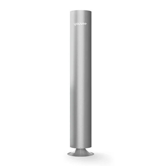 Nach dem Leitsatz "Form Follows Function" in technisch-neutralem Design als vertikaler Zylinder gestaltet, liegt der Fokus dieses Geräts auf einer effektiven Luftreinigung. Hierzu beschränkt sich youvee® nicht nur auf die Desinfektion der angesaugten Luft, sondern gewährleistet zudem deren kontinuierliche und gleichmäßige Verteilung im Raum.