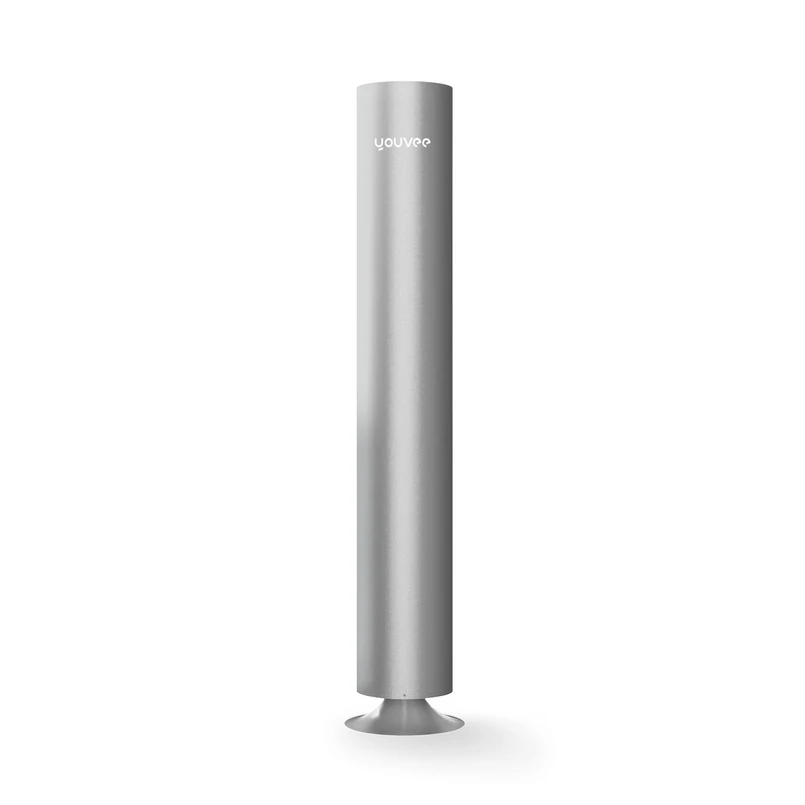 Äußerlich beschränkt sich youvee® auf einen hohen Zylinder, welcher ganz im Dienste der Funktion des UV-C-Luftreinigers steht. Neben der Desinfizierung und Reinigung wird auch eine fortlaufende Umwälzung und Verteilung erreicht.